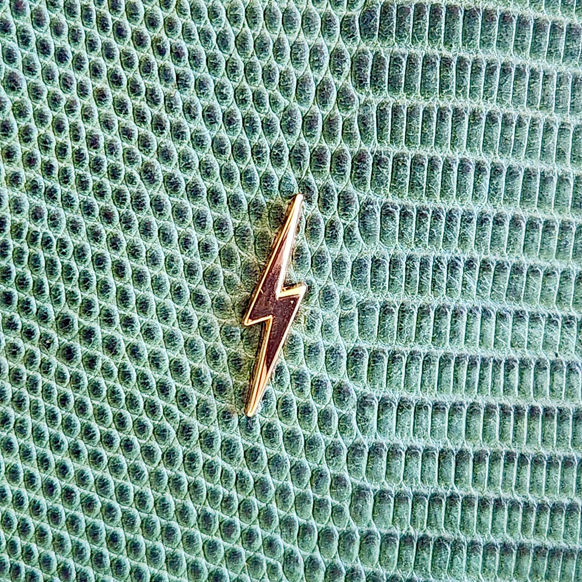 Expertly crafted with beautiful Italian leather, this pouch is a luxurious accessory for any occasion. The gold overlay bolt focal adds a touch of elegance, while the small inside pouch and heavy-duty Italian brass zipper provide practicality. The velvet lining ensures the protection of your belongings. Experience the sophistication of the Emerald Kashimir Lizard Print Pouch.