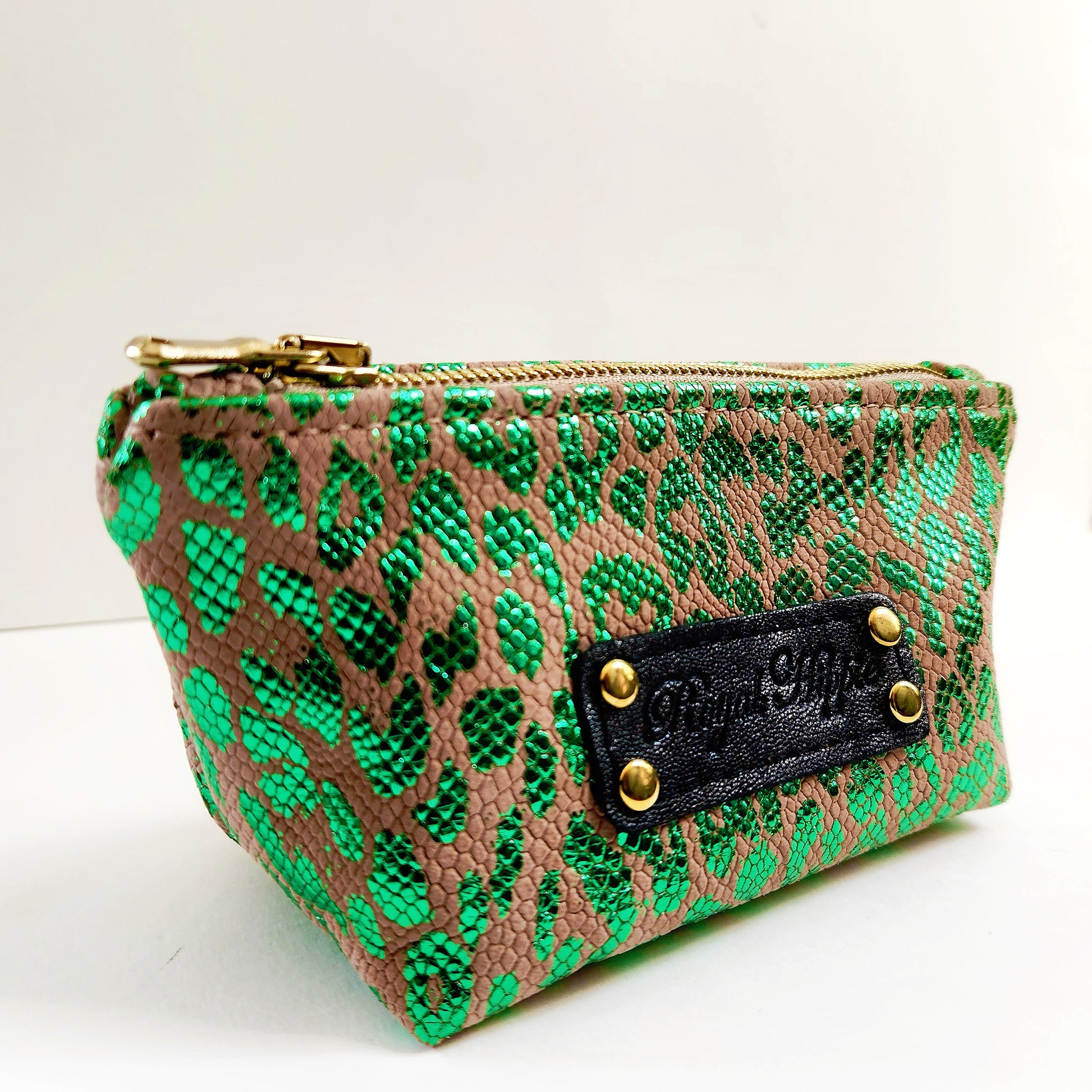 This Jade Leopard Mini Pouch features a stunning metallic print, heavy-duty zipper, and soft velvet lining. Keep your essentials safe and stylish with this durable and chic accessory.
