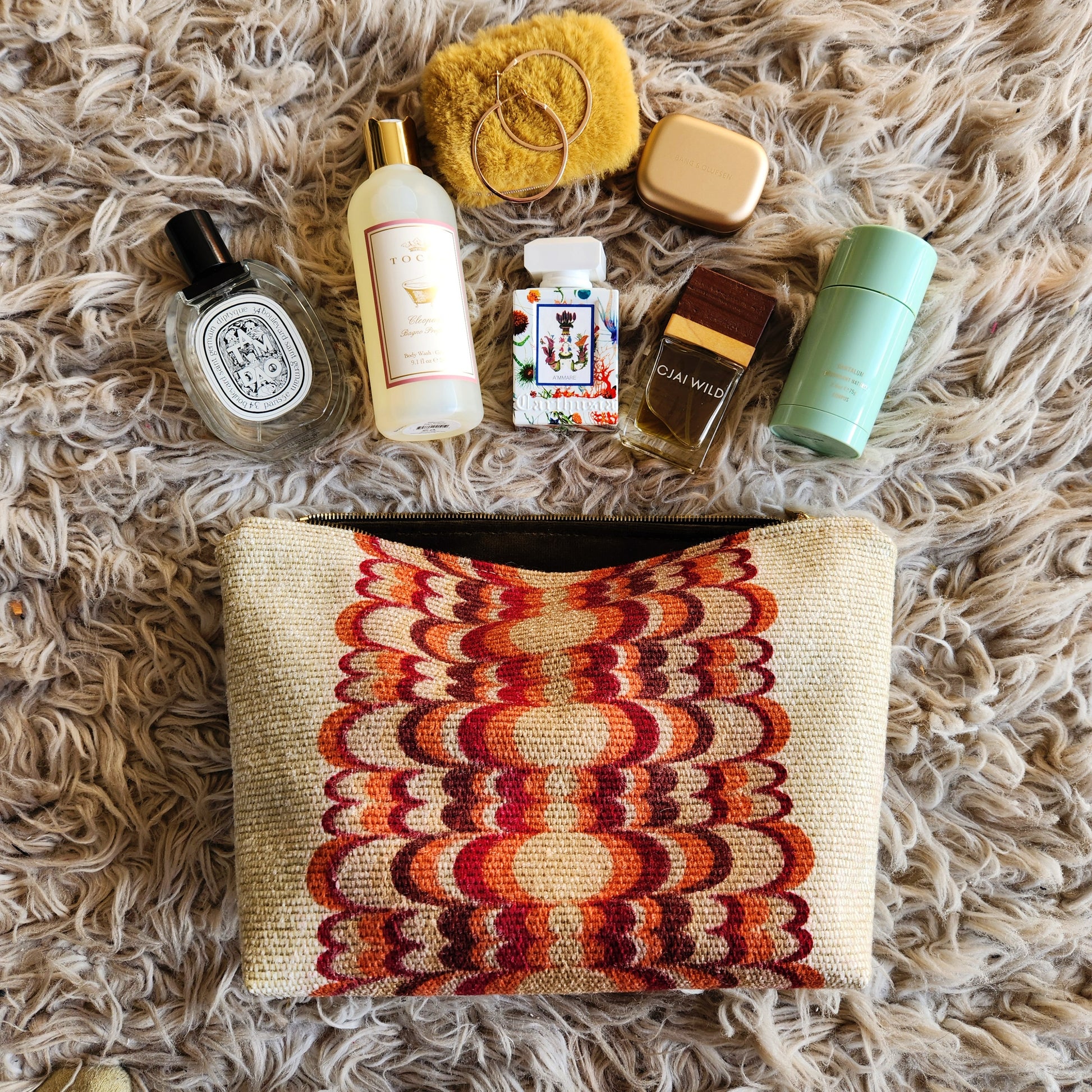 Experience the beauty of vintage with our mid-century woven Traveller Medium bag. The rare dead-stock tapestry from the 70's, lined with luxurious velvet, boasts gorgeous bold hues. Made in the USA, with 9" H x 12" W x 6" D dimensions and a sturdy metal zipper closure, this bag is a functional and stylish addition to your collection.