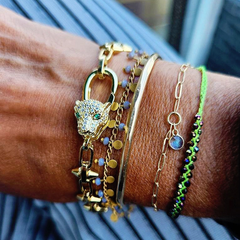 This Grey Opal Bead Chain Bracelet is expertly sourced in Europe and beautifully crafted with a 22kt gold overlay clasp and connector. There are options for small at 7 inches, standard sizing at 7.5 inches, large at 8 inches, and extra large. It is the perfect addition to any jewelry collection. Elevate your style with this elegant and timeless bracelet.
